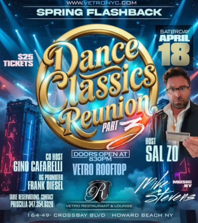 Dance Classics Reunion: Spring Edition w/DJ Mike Steven, Hosted by Sal Zo, Co-Host Gino Cafarelli & The OG Promoter Frank Diesel